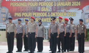 Bahanaindonesia.com – Momen peringatan HUT ke-73 Polairud Polri tahun 2023, Kapolda Sulteng Irjen Pol Dr. Agus Nugroho, S.I.K.,S.H.,M.H. beri penghargaan ke personel Ditpolairud yang beprestasi bertempat di mako Ditpolairud Polda Sulteng, Jumat (1/12/2023).