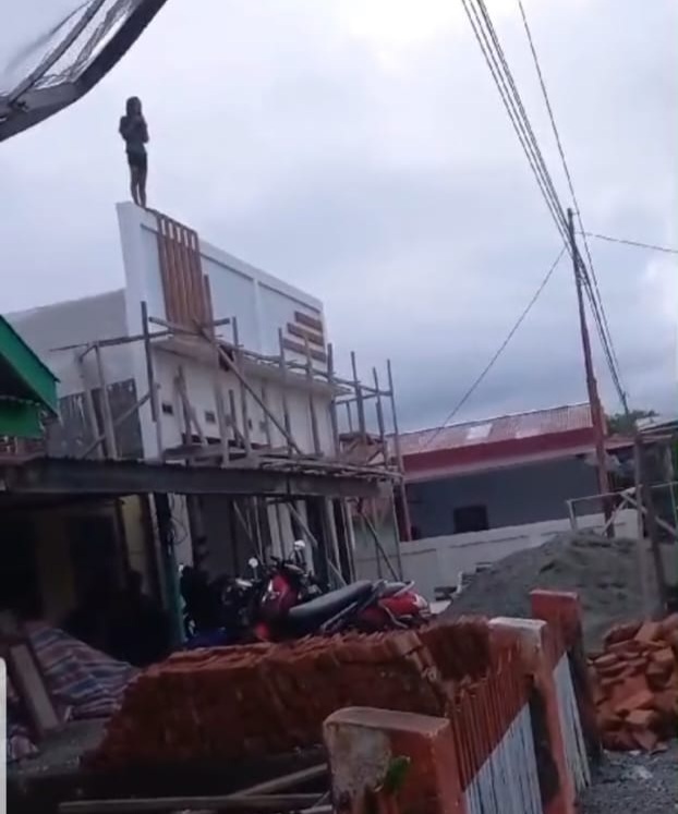 Beruntung aksi nekatnya dengan berdiri diatas atap bangunan Ruko segera diketahui warga yang melihat dan langsung menegur dan meneriaki korban.