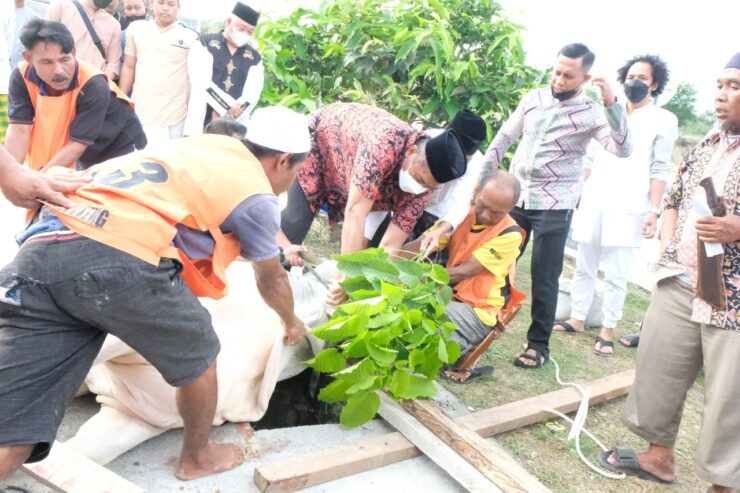 Secara simbolis Kapolda Sulteng menyerahkan hewan kurban kepada panitia pelaksana salat Idul Adha 1443 H untuk selanjutnya di lakukan penyembelihan, yang mana saat itu dilakukan sendiri oleh Kapolda Sulteng.