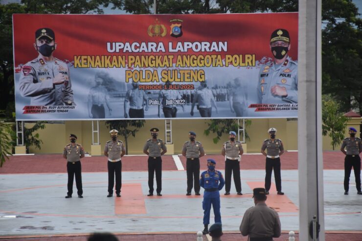 Pagi ini Kapolda Sulteng Irjen Pol. Drs. Rudy Sufahriadi menerima laporan kenaikan pangkat personil Polda Sulteng yang berlangsung di Lapangan Apel Mako Polda Sulteng di Palu, Kamis 30 Juni 2022.