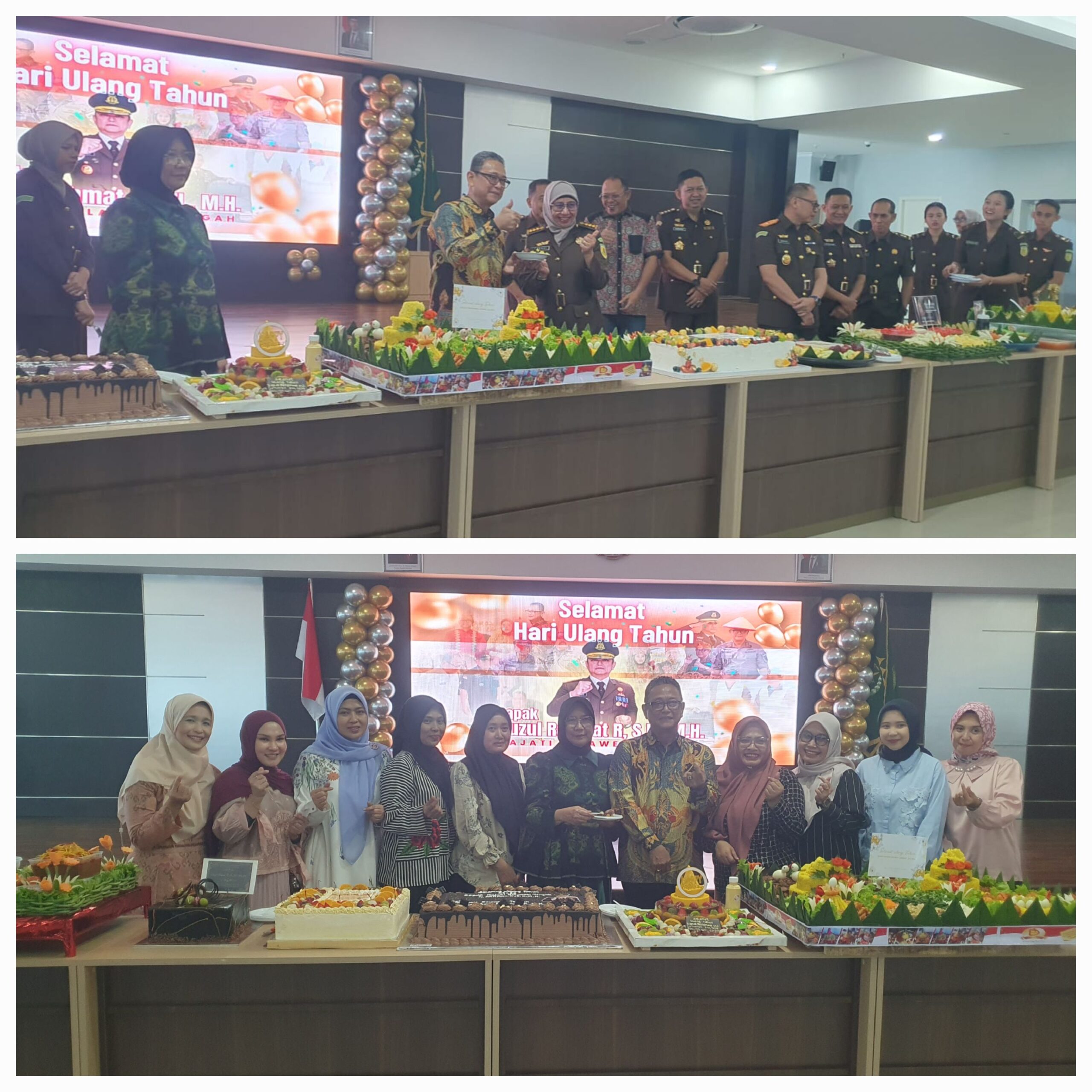 Acara syukuran dilanjutkan dengan pemotongan tumpeng, diiringi musik “Selamat Ulang Tahun”, dan makan bersama, disaksikan Ketua IAD, Wakajati, dan pejabat utama Kejati Sulteng.