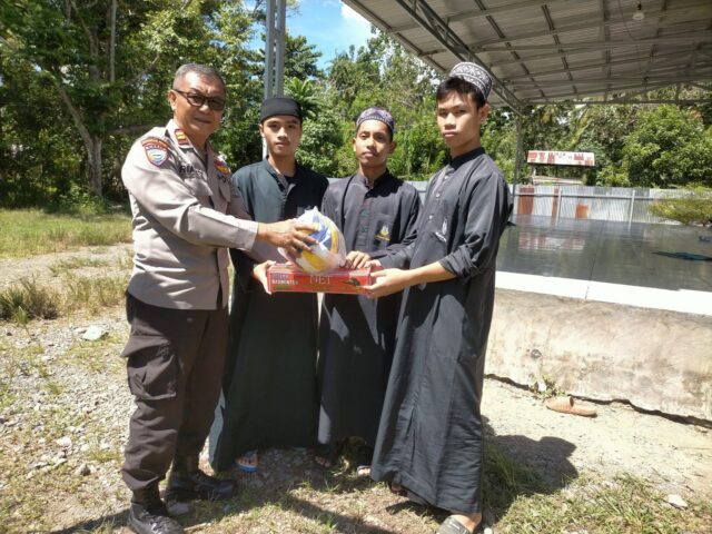 Bahanaindonesia.com- Kepala Satuan Binmas (Kasat Binmas) Polres Poso, Iptu Rianto Hilian, didampingi oleh Ps. Kanit Bhabinkamtibmas Sat Binmas Polres Poso, Aipda Sofyan A.L.Liosi, menyerahkan bantuan sarana olahraga kepada para santri Pondok Pesantren (Ponpes) Alfatah Kalora, Kecamatan Poso Pesisir Utara, Kabupaten Poso, pada hari Rabu (22/5/2024).