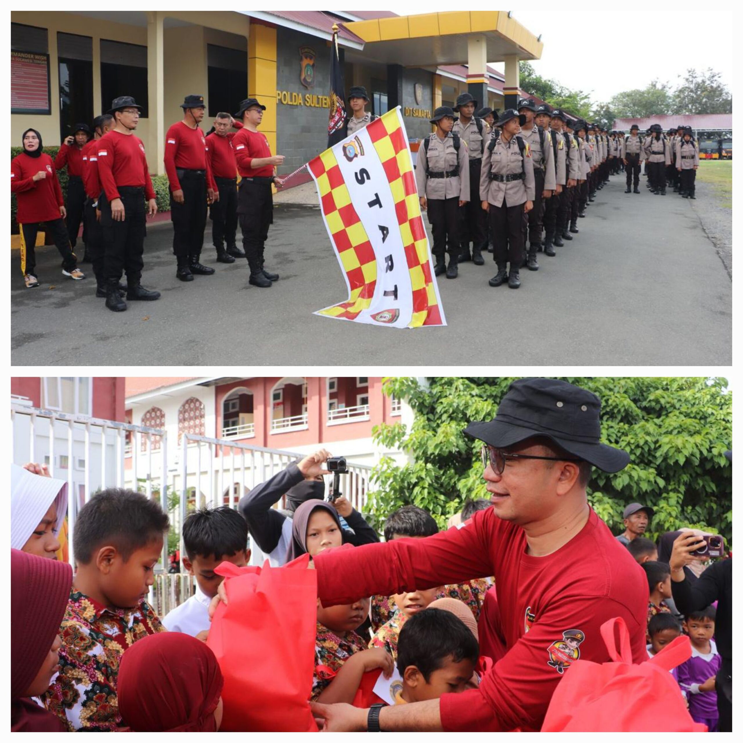 Di tengah perjalanan, para peserta berhenti di Kelurahan Poboya untuk menjalankan bakti sosial. Mereka membagikan bantuan kebutuhan pokok kepada masyarakat setempat, sebagai wujud nyata kepedulian Polri terhadap lingkungan sekitar.