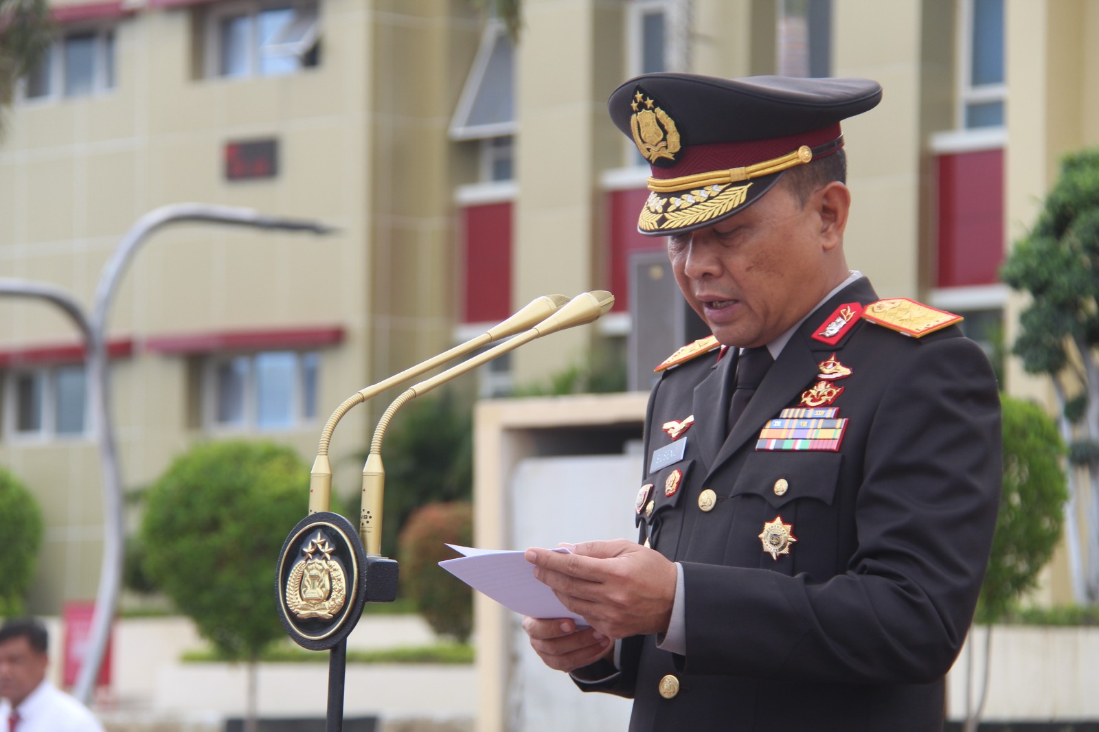 Dalam upacara tersebut selaku Komandan Upacara (Danup) Kompol Margiayanta dan yang membacakan Pembukaan UUD 1945 Iptu Suwondo, dengan mengangkat tema “Kebangkitan Kedua Menuju Indonesia Emas”.