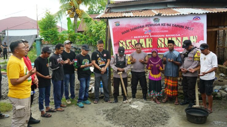 Bahanaindonesia.com – Dalam rangka memperingati hari Sumpah Pemuda ke-94 tahun 2022, Polda Sulteng bersama komunitas vespa kota Palu melaksanakan kegiatan sosial dengan membangun rumah seorang janda yang berada di Desa Kalukubula Biromaru Kabupaten Sigi, Sulawesi tengah, Jumat 28 Oktober 2022.
