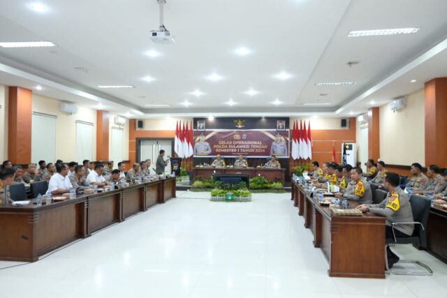 Bahanaindonesia.com – Kapolda Sulteng, Irjen Pol Dr. Agus Nugroho, memimpin Gelar Operasional Semester I Tahun 2024 yang berlangsung selama 2 (dua) hari, pada 6 hingga 7 Agustus 2024 di ruang Rupatama Lantai II Polda Sulteng.
