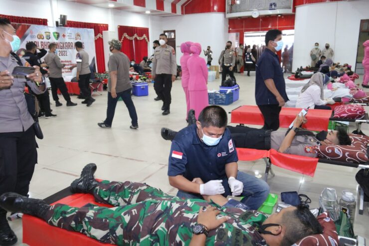 Bahanaindonesia.com – Salah satu kegiatan bhakti kesehatan dalam rangka Hari Bhayangkara ke-76 tahun 2022, Polda Sulteng menggelar donor darah.