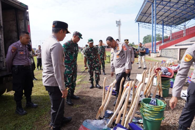 Bahanaindonesia.com – Kapolda Jabar Irjen Pol Suntana didampingi Danrem Surya Kencana Bogor Brigjend TNI Rudy Saladin mempimpin apel gabungan recovery pasca terjadinya gempa bumi dan kesiapan penanganan serta penanggulangannya bertempat di Lapang Stadion Badak Putih Cianjur, Jumat, (9/12/2022).