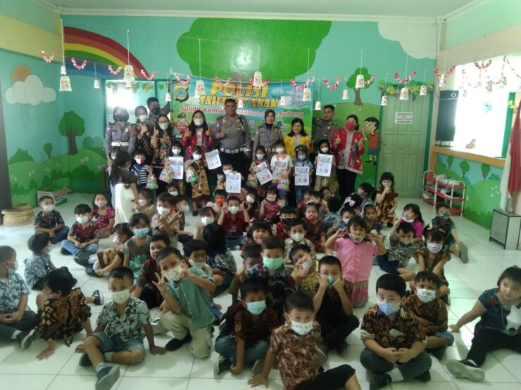Bahanaindonesia.com – Anak-anak Taman Kanak-Kanak (TK) Gamaliel di Jalan Pattimura Palu diberikan surprise kehadiran bapak ibu Polisi berseragam lalu lintas, Sabtu (13/8/2022)