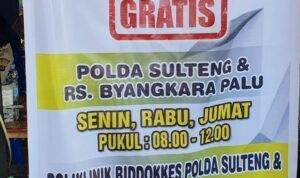 Lanjutnya, adapun jadwalnya, untuk pelayanan Bid.Dokes Polda Sulteng dilaksanakan ditaman Gor Palu, setiap hari Selasa, Kamis dan Sabtu, dimulai pukul 08.00- 12.00 Wita.