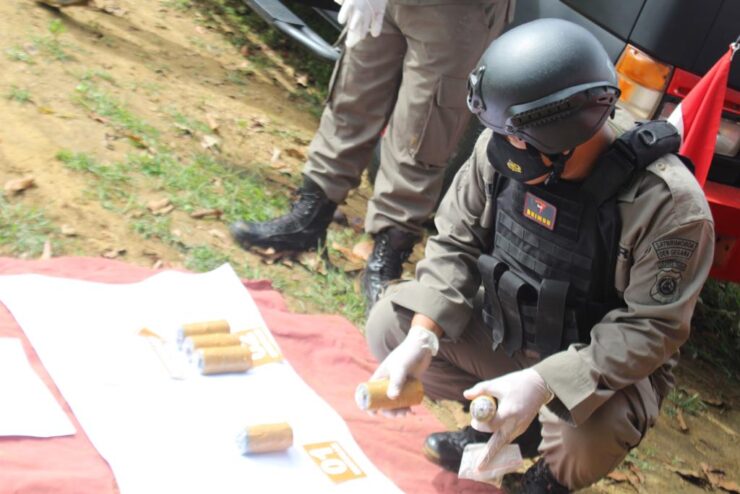 Bahanaindonesia.com – Detasemen Gegana Satbrimob Polda Sulawesi Tengah (Sulteng) memusnahkan barang bukti sebanyak 6 buah bom lontong milik teroris Poso bertempat di markas Kompi I Batalyon B Satbrimob Polda Sulteng, Poso, Sulteng, Rabu (22/12/2021).