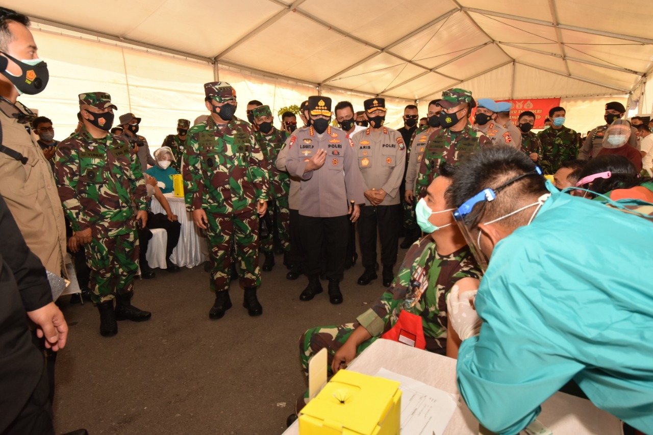 Kadiv Humas Polri Irjen. Pol. Raden Prabowo Argo Yuwono, S.I.K., M.Si., mengatakan, sebelum mendapat suntikan vaksin Covid-19, para anggota harus menjalani pemeriksaan awal, termasuk pengecekan suhu dan tekanan darah. Vaksin Covid – 19 tersebut diberikan kepada 500 Personil Polri dan 500 Prajurit TNI.